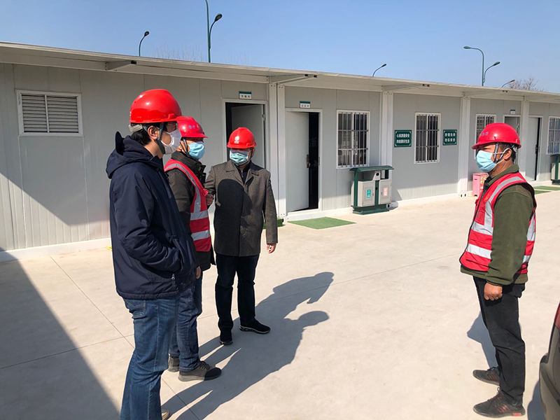 王主任首先在工地入口处查看了现场防疫物资、防疫宣传的布置情况,详细了解了现场的防疫物资如口罩、消毒液的准备情况。并查看了项目部的办公、生活区域的消毒、人员卫生状况。对于项目部能够严格按照省公司复工“五项准备”进行建筑表式肯定。