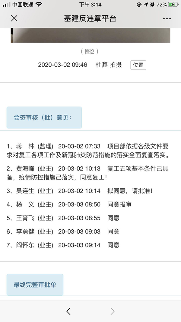 随后在项目部会议室召开简短的会议,王主任等详细翻阅了节后复工的所需要的相关证明材料。王主任指出,当前新冠肺炎防疫形势严峻,作为施工单位一定要加强进场人员的信息排查与身体健康的监测,要做到不瞒报,不漏报。同时,现场也要加强安全文明的建筑,作为盐城地区的示范工程,要做一个好的表率。