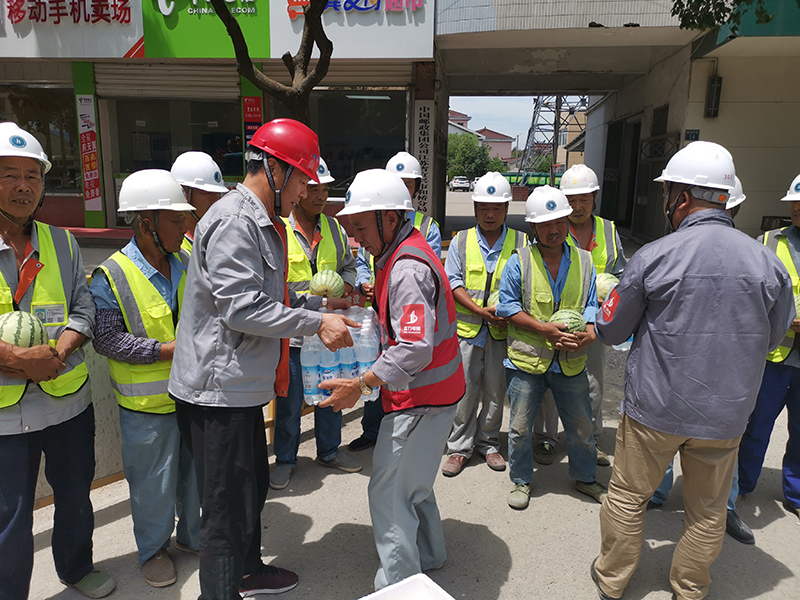 盛夏,烈日炎炎,热浪滚滚,节节攀升的气温让所有人都体会到了骄阳的威力。连日来公司领导来到施工一线,向奋战在一线的工作人员送去慰问并将公司准备好的高温慰问品送到员工手中让一线的员工在酷暑中感受舒心凉意。
