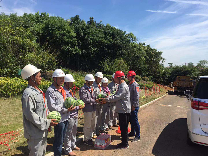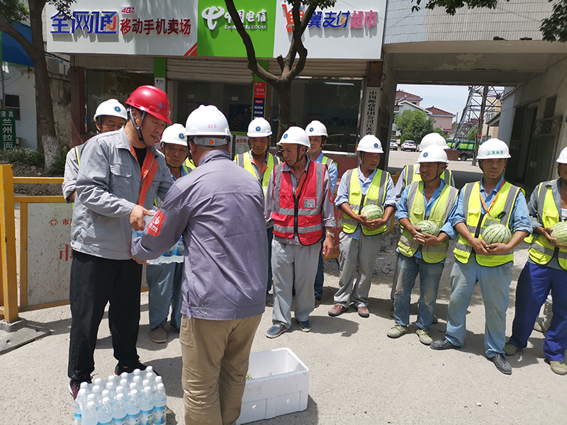 盛夏,烈日炎炎,热浪滚滚,节节攀升的气温让所有人都体会到了骄阳的威力。连日来公司领导来到施工一线,向奋战在一线的工作人员送去慰问并将公司准备好的高温慰问品送到员工手中让一线的员工在酷暑中感受舒心凉意。